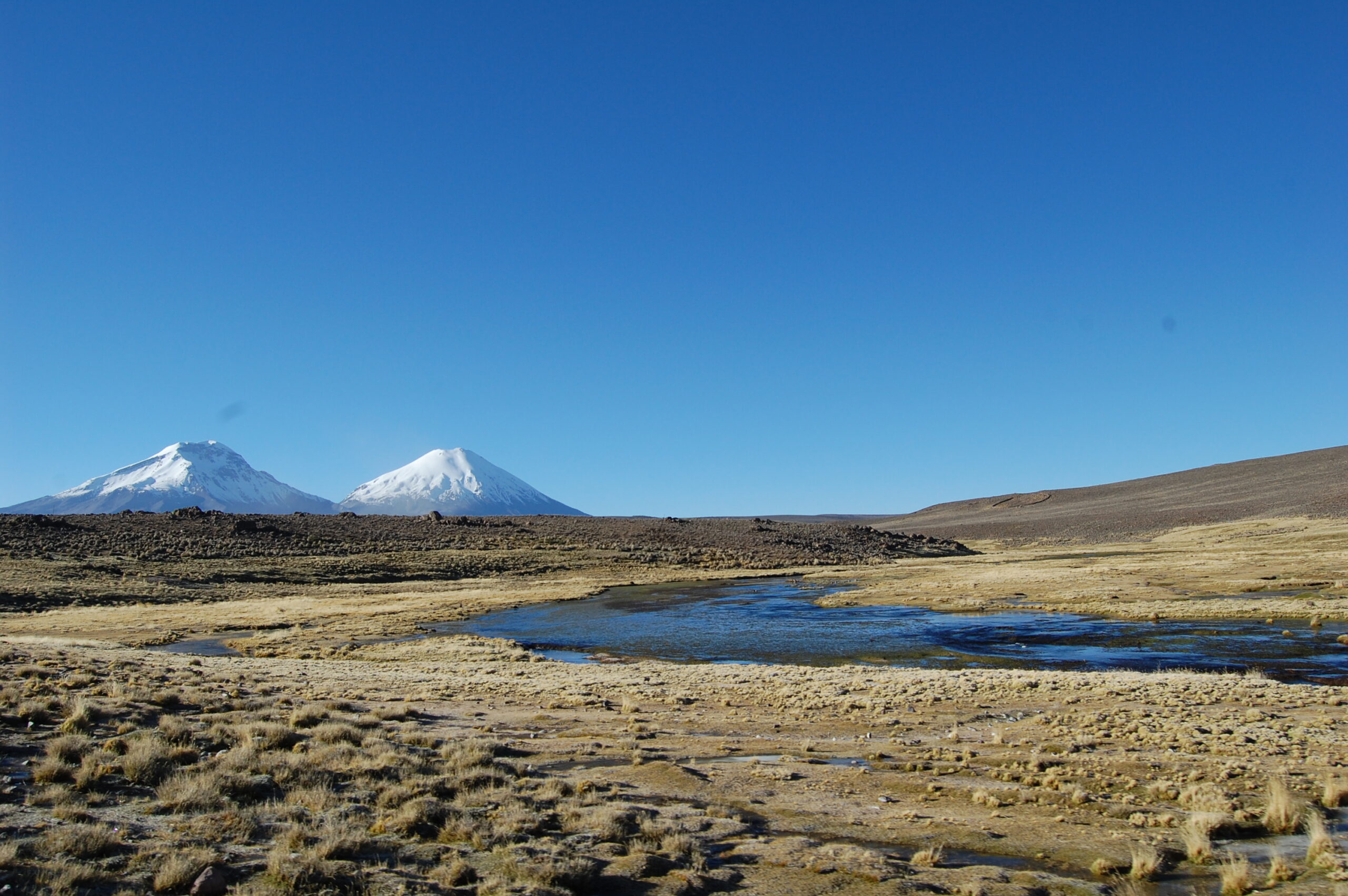 Highland bofedal or wetland, near Parinacota and Pomerape Mountains. A stellar spot for birdwatching and enjoying the altiplano landscape. Photo by Jorge Montesinos